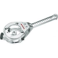 Ratel-pijpsnijder niro tbv rvs pijpen. Neemt weinig ruimte in, ook zeer geschikt voor werk aan uitlaatpijpen van auto's. Huis uit verzinkt alu-persgietijzer. Eenvoudige bediening door ratel-aandrijving en automatische aanzet van de snijwieltjes bij iedere omwenteling. Snijwieltje uit hoogwaardig gereedschapsstaal, hoge standtijden. Met één reserve snijwieltje.