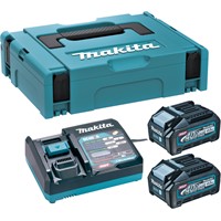 Startset met 2 maal accu BL4040 (36 volt, 4,0Ah) en snellader DC40RA. Geleverd in Mbox nr. 1.