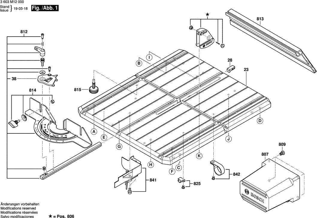 Tekeningen van de Bosch 3603M12000 ( ADVANCEDTABLECUT52 )