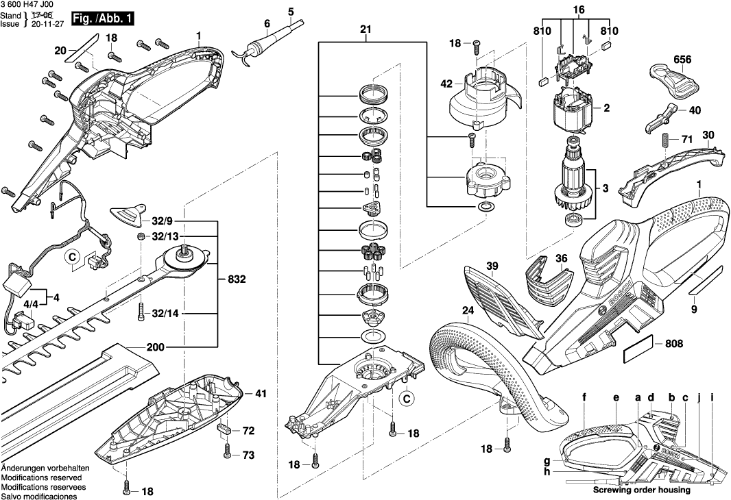 Onderdelen lijst van de Bosch 3600H47J00 ( AHS65-34 )
