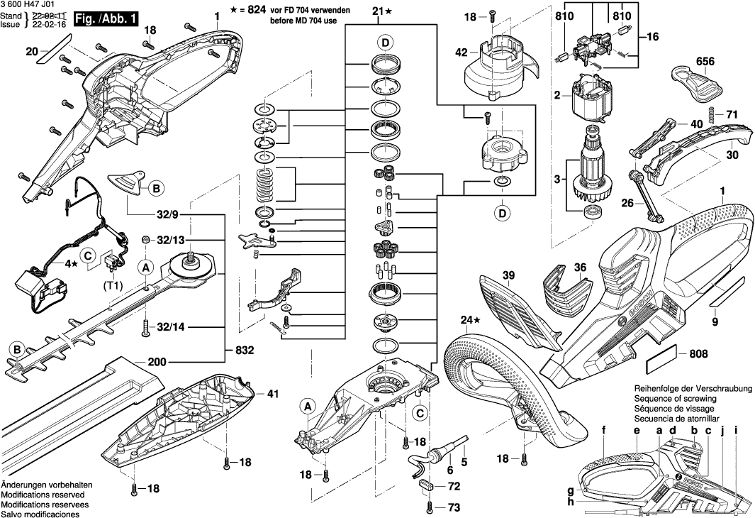 Onderdelen lijst van de Bosch 3600H47K01 ( AHS70-34 )