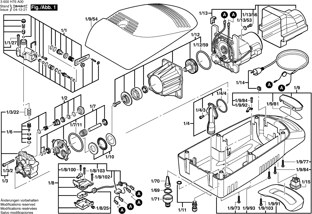 Onderdelen lijst van de Bosch 3600H76A00 ( AQUATAK100 )
