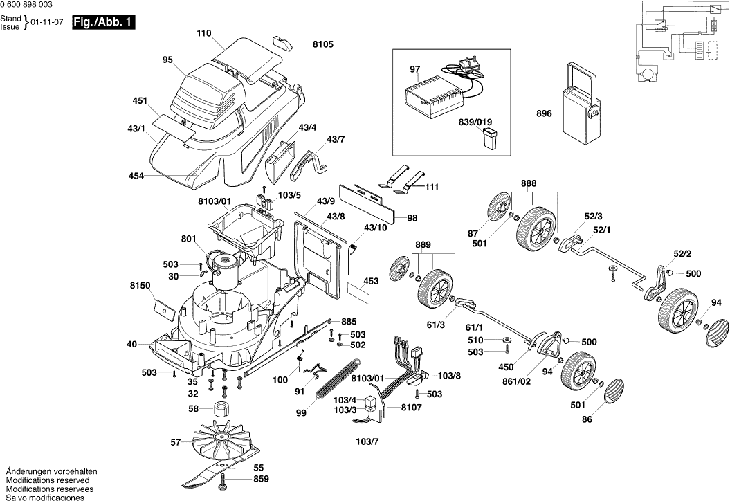 Onderdelen lijst van de Bosch 0600898003 ( ARM32ACCU )