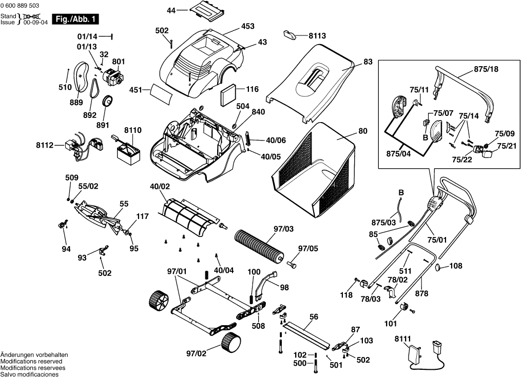 Onderdelen lijst van de Bosch 0600889503 ( ASM32ACCU )
