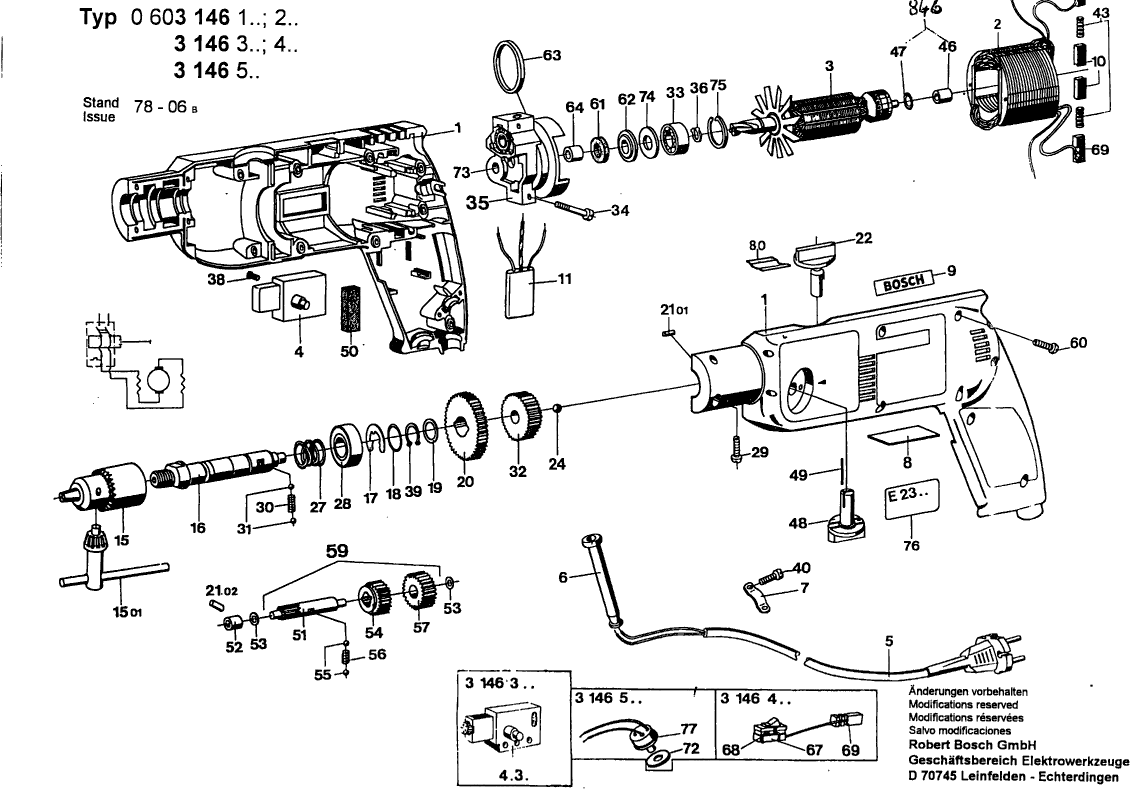 Hier vindt u alle beschikbare onderdelen en tekeningen van de 'Bosch 0603146203 ( CSB450-2 )'. Vanaf hier kunt u direct alle gewenste onderdelen bestellen. Vele onderdelen moeten bij de fabrikant besteld worden, dit duurt afhankelijk van het merk, één tot vier weken. Alle informatie die we hebben, staat op onze website, wij kunnen u geen advies geven over wat u nodig heeft, daarvoor zult u de machine ter reparatie in moeten leveren. Let bij het bestellen op het volgende: