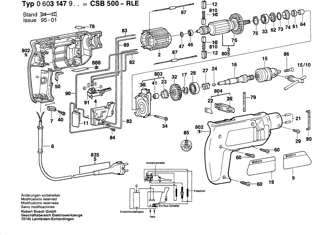 Onderdelen lijst van de Bosch 0603147903 ( CSB500-RLE )