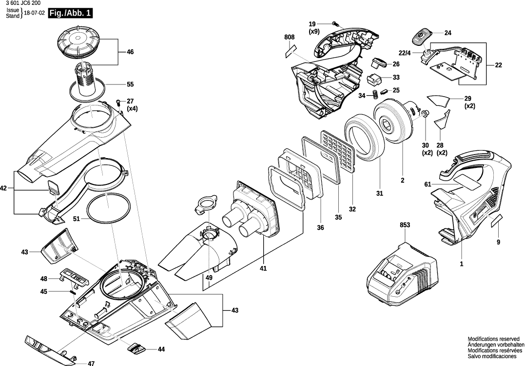 Tekeningen van de Bosch 3601JC6200 ( GAS18V-1 )