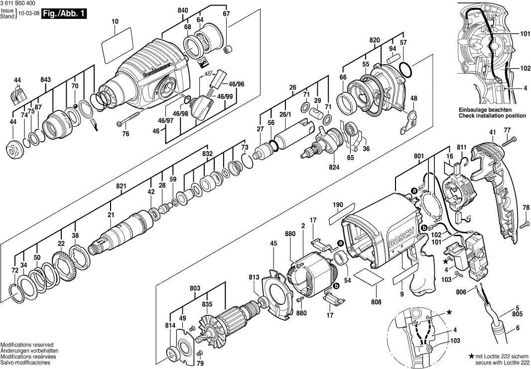 Tekeningen van de Bosch 3611B50400 ( GBH2-23RE )