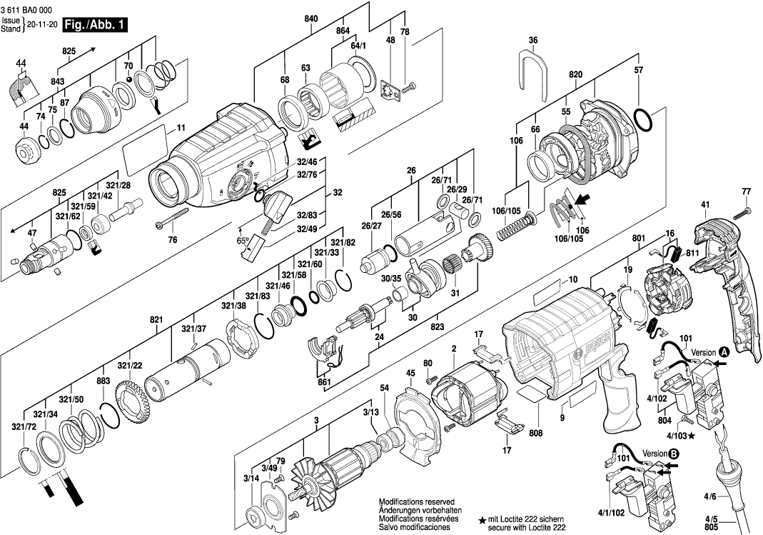 Tekeningen van de Bosch 3611BA0000 ( GBH2-24D )