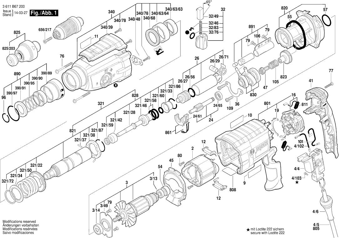 Tekeningen van de Bosch 3611B67230 ( GBH2-28DFV )
