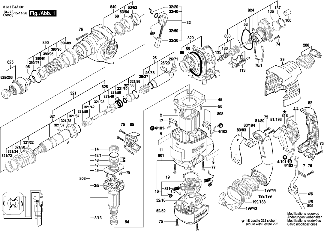 Onderdelen lijst van de Bosch 3611B4A001 ( GBH3-28DFR )