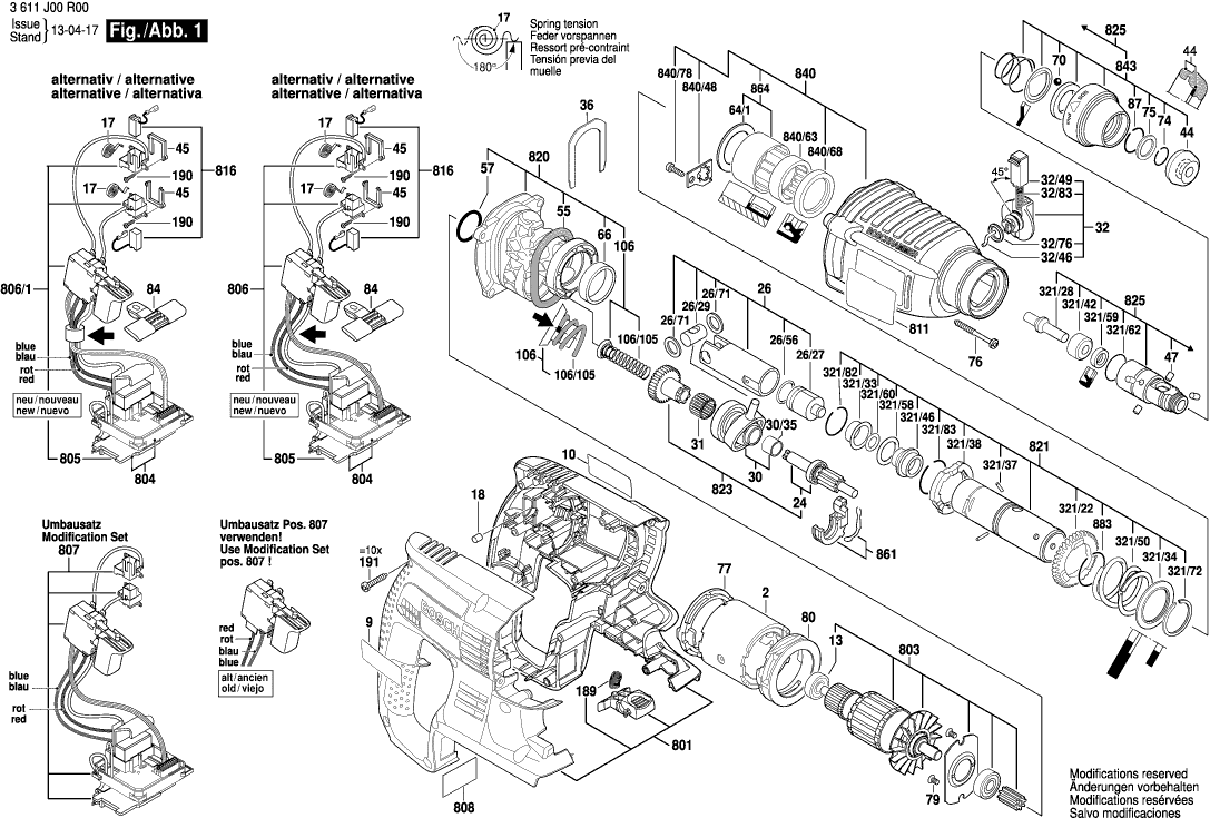 Tekeningen van de Bosch 3611J00R00 ( GBH36V-LI )
