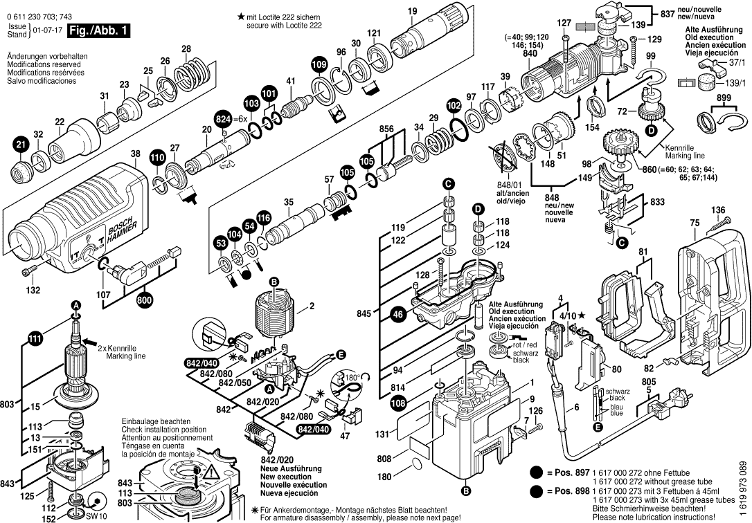 Onderdelen lijst van de Bosch 0611230703 ( GBH5DCE )