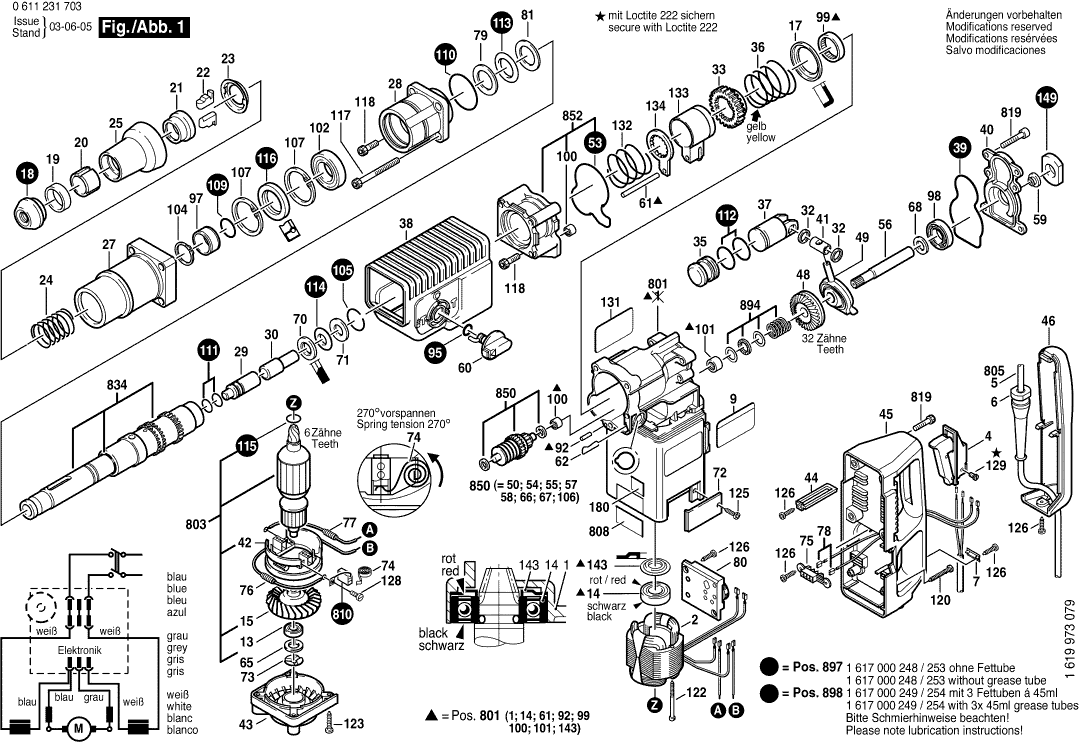 Hier vindt u alle beschikbare onderdelen en tekeningen van de 'Bosch 0611231703 ( GBH8DCE )'. Vanaf hier kunt u direct alle gewenste onderdelen bestellen. Vele onderdelen moeten bij de fabrikant besteld worden, dit duurt afhankelijk van het merk, één tot vier weken. Alle informatie die we hebben, staat op onze website, wij kunnen u geen advies geven over wat u nodig heeft, daarvoor zult u de machine ter reparatie in moeten leveren. Let bij het bestellen op het volgende: