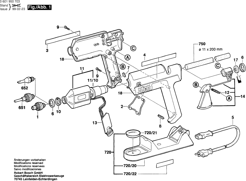 Onderdelen lijst van de Bosch 0601950708 ( GKP200CE )