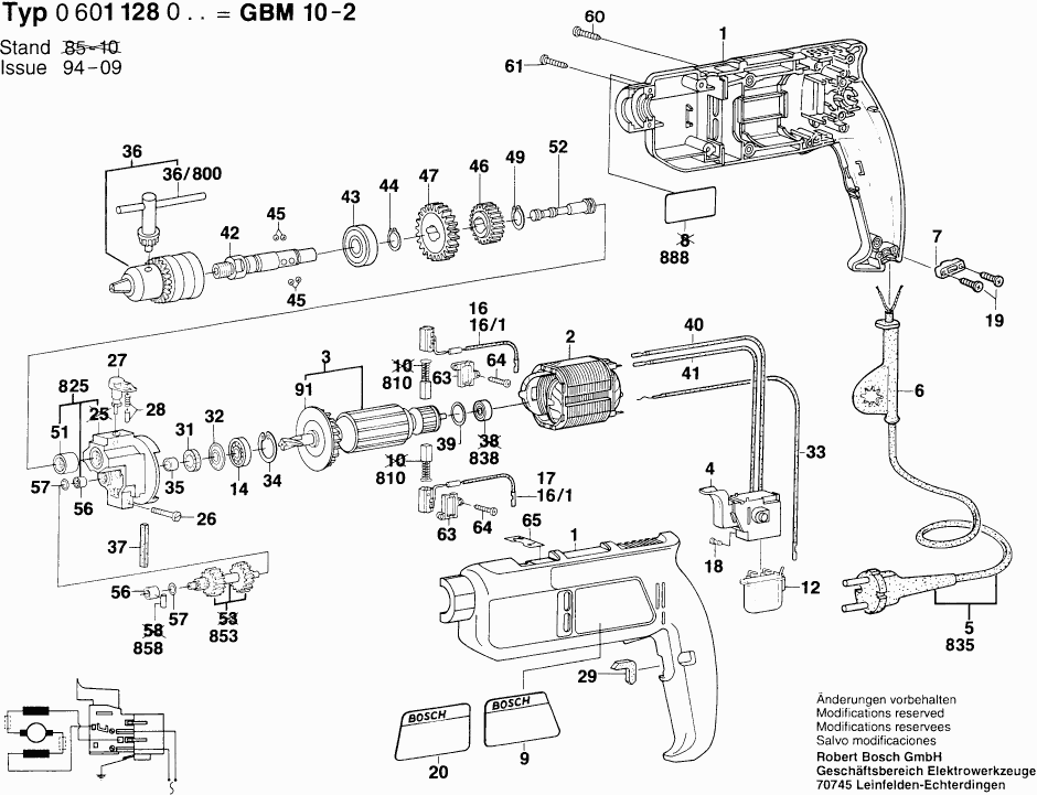 Hier vindt u alle beschikbare onderdelen en tekeningen van de 'Bosch 0601128003 ( GMB10-2 )'. Vanaf hier kunt u direct alle gewenste onderdelen bestellen. Vele onderdelen moeten bij de fabrikant besteld worden, dit duurt afhankelijk van het merk, één tot vier weken. Alle informatie die we hebben, staat op onze website, wij kunnen u geen advies geven over wat u nodig heeft, daarvoor zult u de machine ter reparatie in moeten leveren. Let bij het bestellen op het volgende: