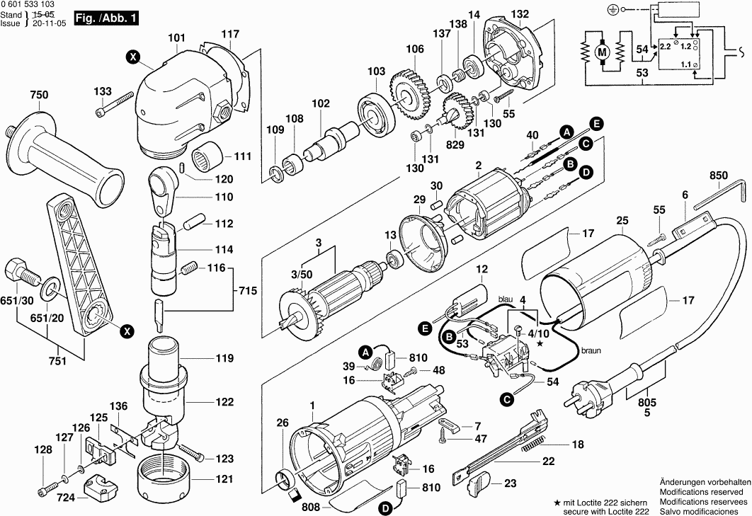 Onderdelen lijst van de Bosch 0601533103 ( GNA3,5 )
