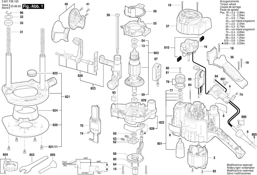 Tekeningen van de Bosch 3601F26100 ( GOF1250LCE )