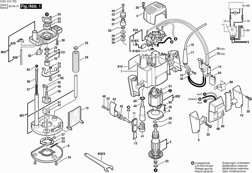 Hier vindt u alle beschikbare onderdelen en tekeningen van de 'Bosch 0601614703 ( GOF900ACE )'. Vanaf hier kunt u direct alle gewenste onderdelen bestellen. Vele onderdelen moeten bij de fabrikant besteld worden, dit duurt afhankelijk van het merk, één tot vier weken. Alle informatie die we hebben, staat op onze website, wij kunnen u geen advies geven over wat u nodig heeft, daarvoor zult u de machine ter reparatie in moeten leveren. Let bij het bestellen op het volgende: