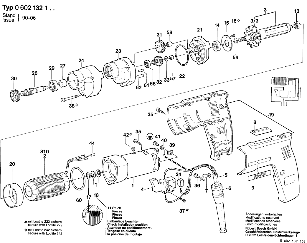 Hier vindt u alle beschikbare onderdelen en tekeningen van de 'Bosch 0602132161 ( GR.57 )'. Vanaf hier kunt u direct alle gewenste onderdelen bestellen. Vele onderdelen moeten bij de fabrikant besteld worden, dit duurt afhankelijk van het merk, één tot vier weken. Alle informatie die we hebben, staat op onze website, wij kunnen u geen advies geven over wat u nodig heeft, daarvoor zult u de machine ter reparatie in moeten leveren. Let bij het bestellen op het volgende: