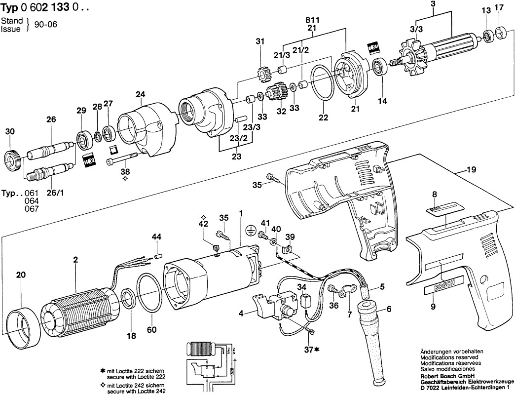 Hier vindt u alle beschikbare onderdelen en tekeningen van de 'Bosch 0602133061 ( GR.57 )'. Vanaf hier kunt u direct alle gewenste onderdelen bestellen. Vele onderdelen moeten bij de fabrikant besteld worden, dit duurt afhankelijk van het merk, één tot vier weken. Alle informatie die we hebben, staat op onze website, wij kunnen u geen advies geven over wat u nodig heeft, daarvoor zult u de machine ter reparatie in moeten leveren. Let bij het bestellen op het volgende: