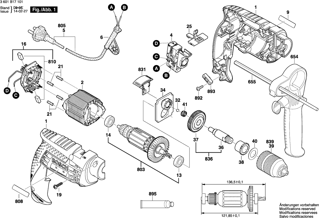 Tekeningen van de Bosch 3601B17101 ( GSB13RE )