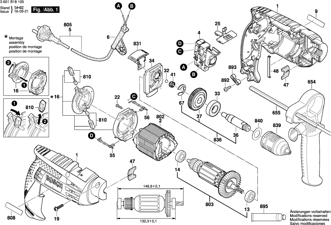 Tekeningen van de Bosch 3601B18105 ( GSB1600 )