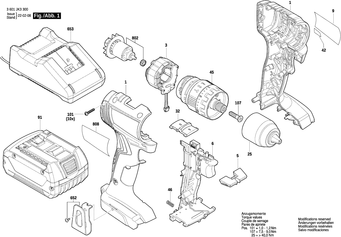 Tekeningen van de Bosch 3601JK3300 ( GSB18V-45 )