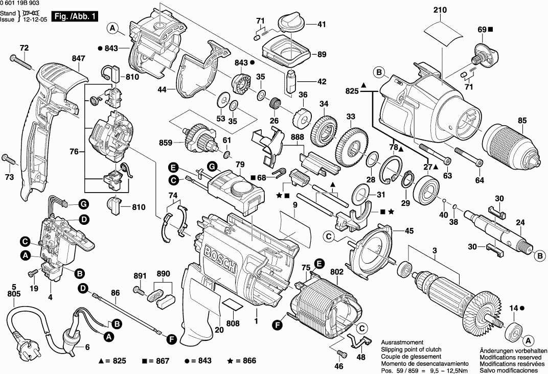 Onderdelen lijst van de Bosch 060119B903 ( GSB20-2RET )