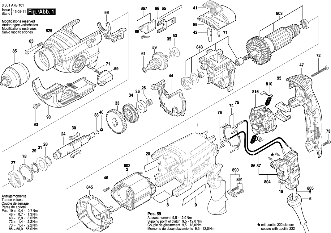 Tekeningen van de Bosch 3601A7B101 ( GSB780-2RE )
