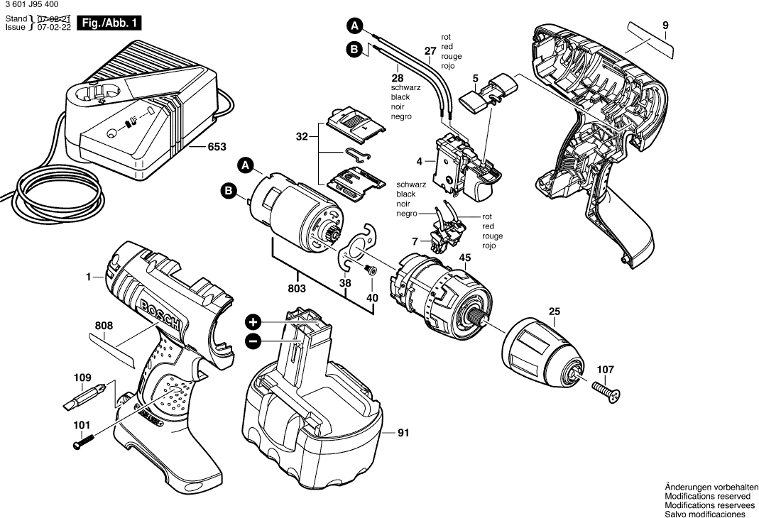 Onderdelen lijst van de Bosch 3601J95400 ( GSR14,4V )