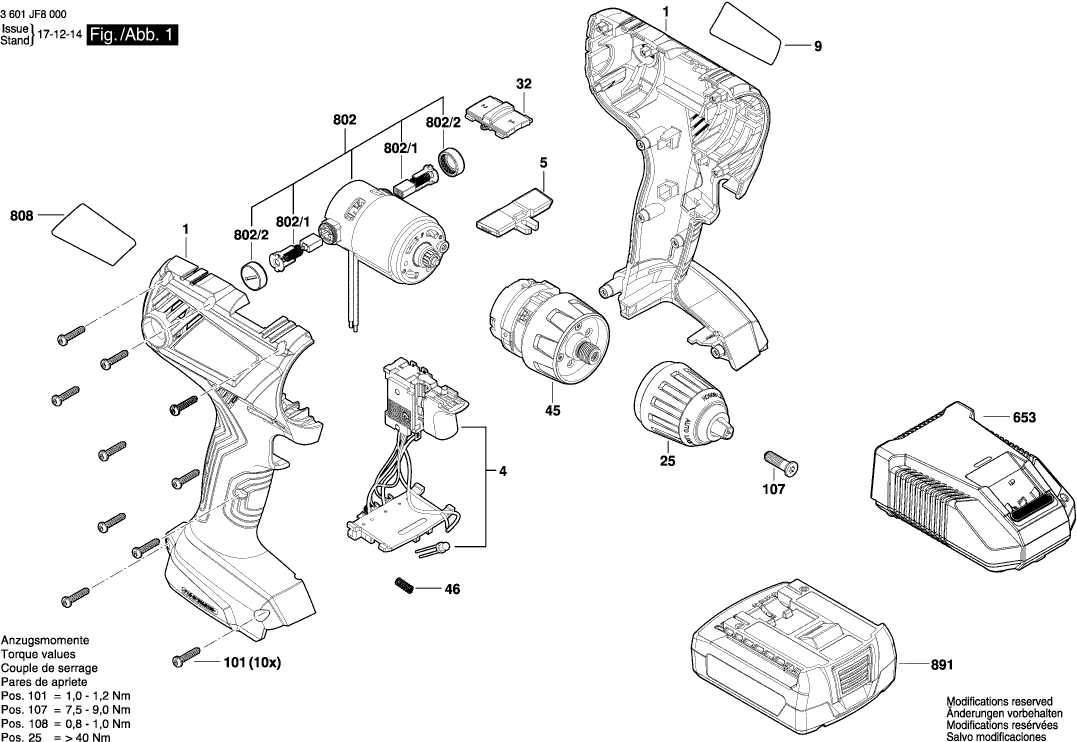 Tekeningen van de Bosch 3601JF8000 ( GSR140-LI )