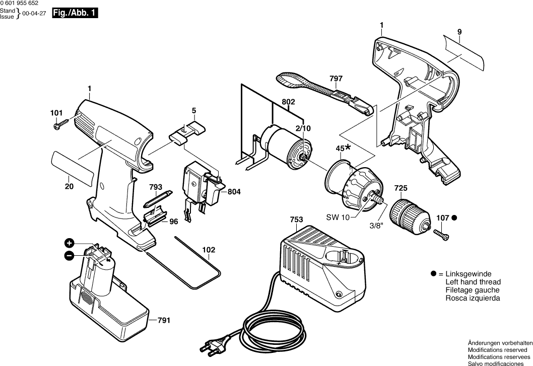 Tekeningen van de Bosch 0601955655 ( GSR9,6-1 )