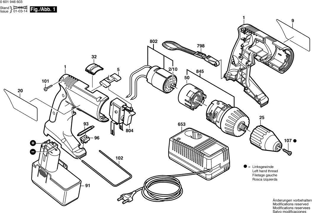 Onderdelen lijst van de Bosch 0601946655 ( GSR9,6VPE-2 )