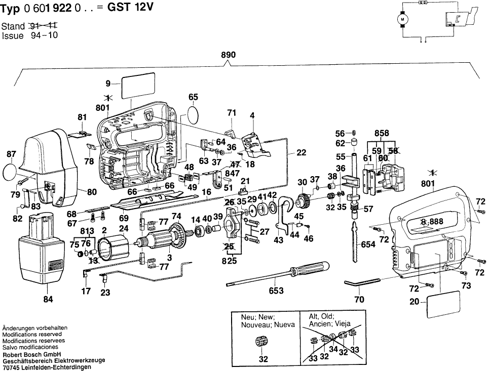 Hier vindt u alle beschikbare onderdelen en tekeningen van de 'Bosch 0601922003 ( GST12V )'. Vanaf hier kunt u direct alle gewenste onderdelen bestellen. Vele onderdelen moeten bij de fabrikant besteld worden, dit duurt afhankelijk van het merk, één tot vier weken. Alle informatie die we hebben, staat op onze website, wij kunnen u geen advies geven over wat u nodig heeft, daarvoor zult u de machine ter reparatie in moeten leveren. Let bij het bestellen op het volgende: