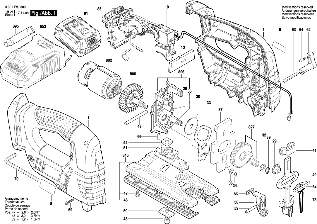 Onderdelen lijst van de Bosch 3601E8J3D0 ( GST18V-LI )