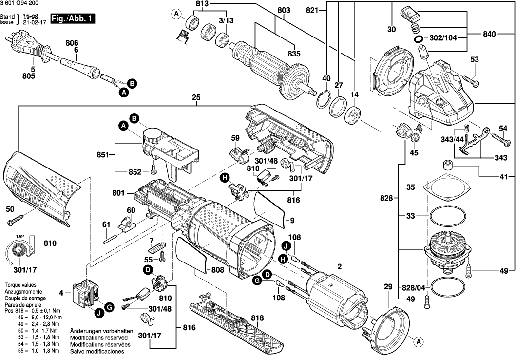 Onderdelen lijst van de Bosch 3601G94200 ( GWS12-125CIEP )