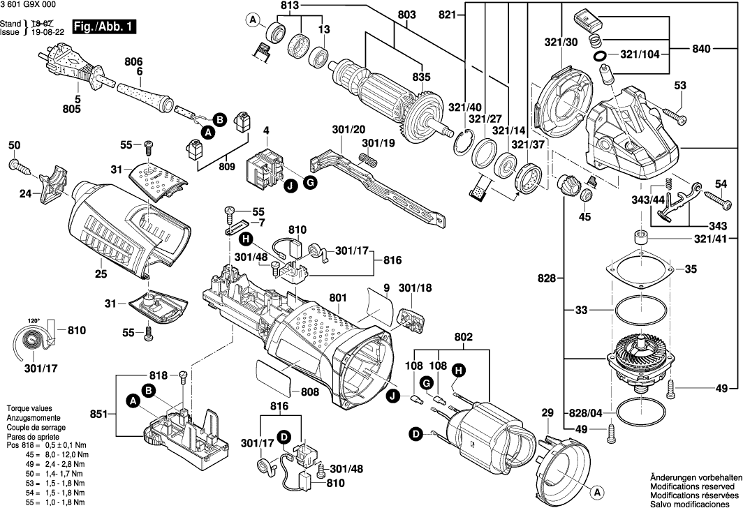 Tekeningen van de Bosch 3601G9X000 ( GWS15-125INOX )