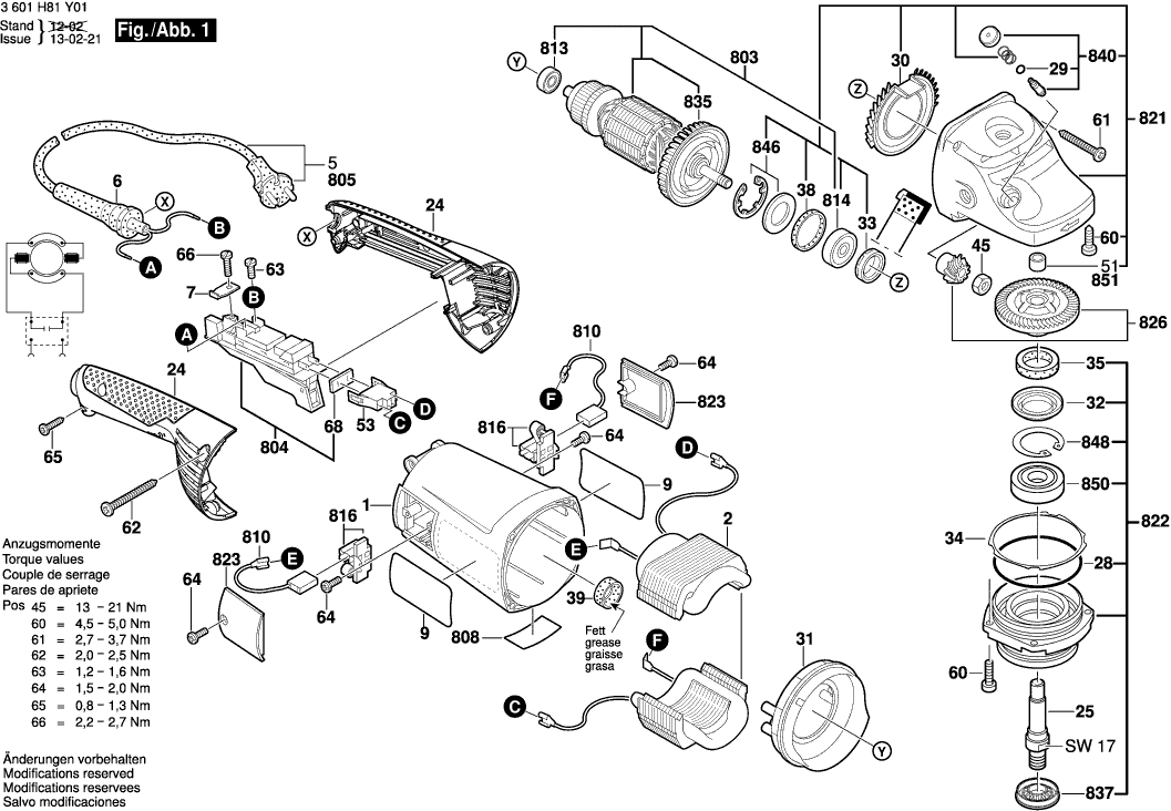 Tekeningen van de Bosch 3601H81Y01 ( GWS22-180H )