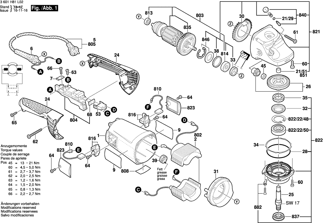 Tekeningen van de Bosch 3601H821P4 ( GWS22-230H )