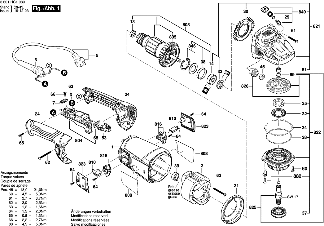 Onderdelen lijst van de Bosch 3601HC1302 ( GWS22-230J )