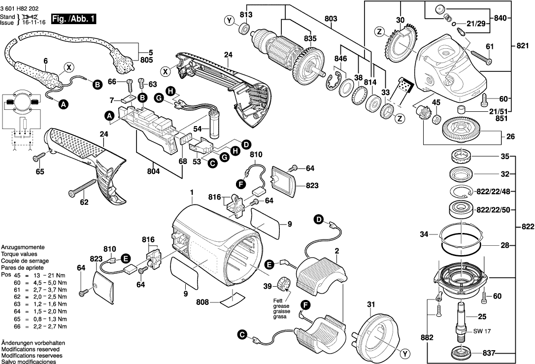 Tekeningen van de Bosch 3601H82202 ( GWS22-230JH )
