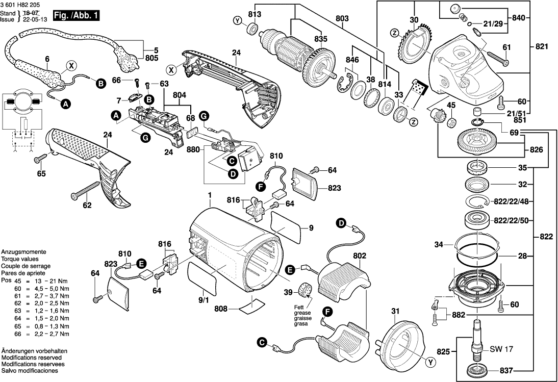 Tekeningen van de Bosch 3601H82205 ( GWS22-230JH )