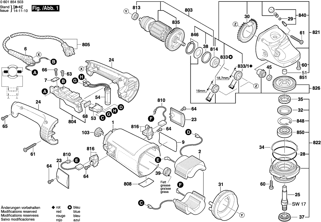 Onderdelen lijst van de Bosch 0601854503 ( GWS24-230JH )