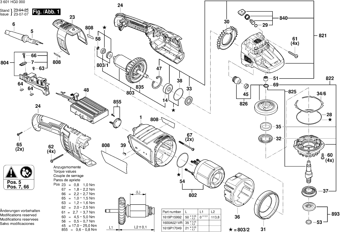 Onderdelen lijst van de Bosch 3601HG1100 ( GWS30-230PB )