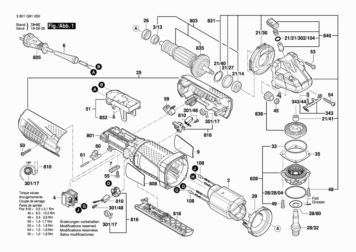 Tekeningen van de Bosch 3601G91200 ( GWS9-125P )