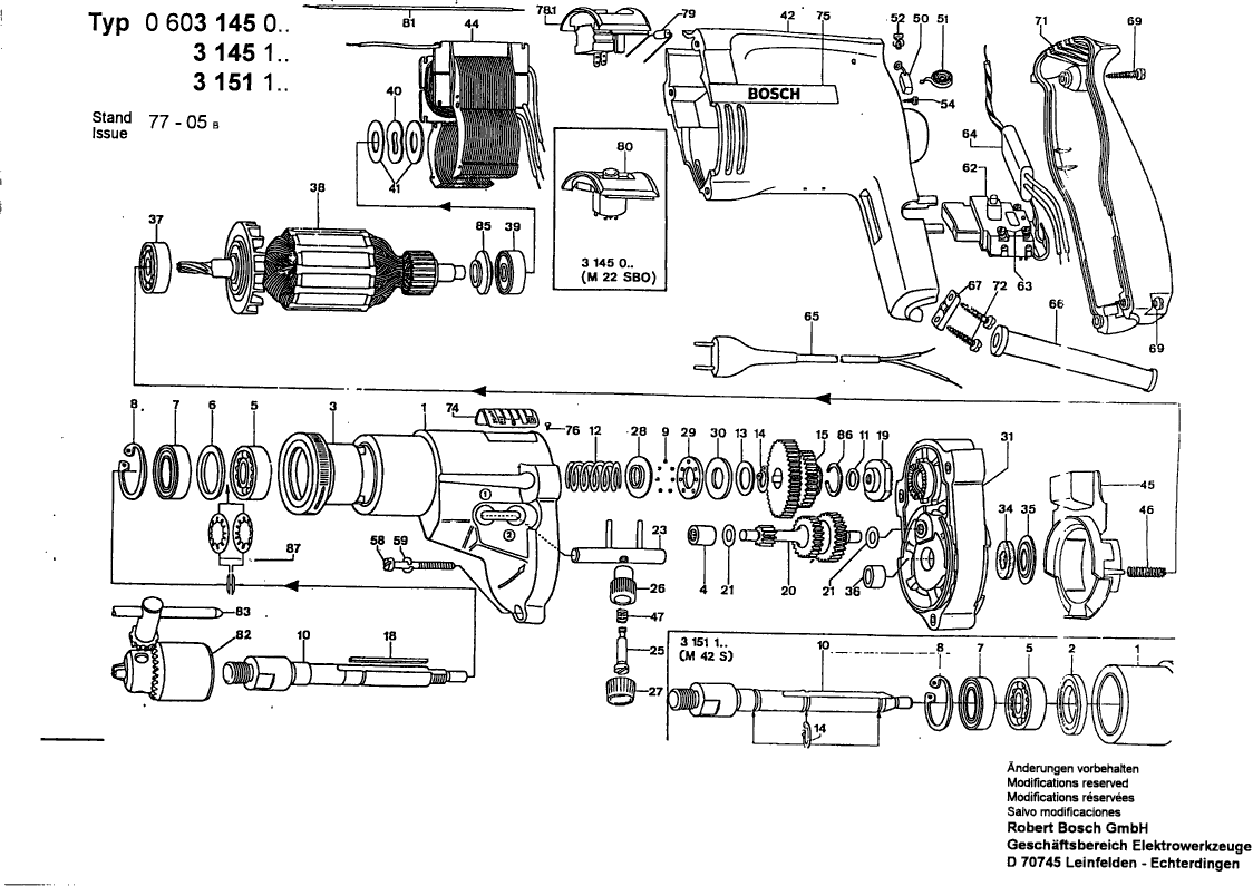 Onderdelen lijst van de Bosch 0603151103 ( M42S )