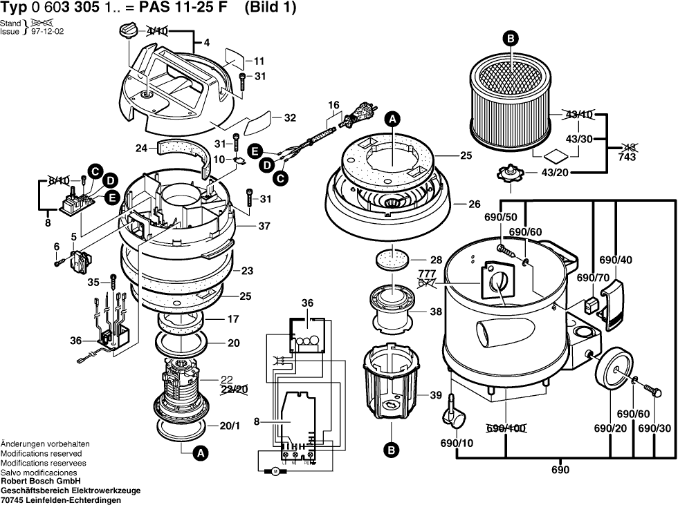 Hier vindt u alle beschikbare onderdelen en tekeningen van de 'Bosch 0603305103 ( PAS10-25F )'. Vanaf hier kunt u direct alle gewenste onderdelen bestellen. Vele onderdelen moeten bij de fabrikant besteld worden, dit duurt afhankelijk van het merk, één tot vier weken. Alle informatie die we hebben, staat op onze website, wij kunnen u geen advies geven over wat u nodig heeft, daarvoor zult u de machine ter reparatie in moeten leveren. Let bij het bestellen op het volgende: