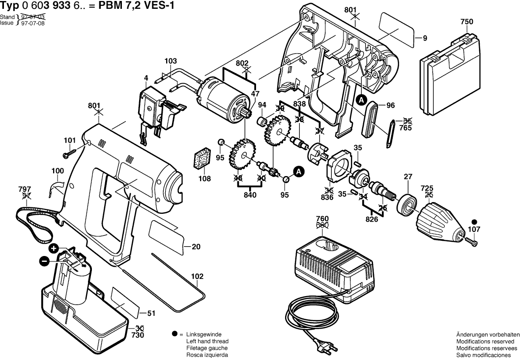 Tekeningen van de Bosch 0603933603 ( PBM7,2VES-1 )
