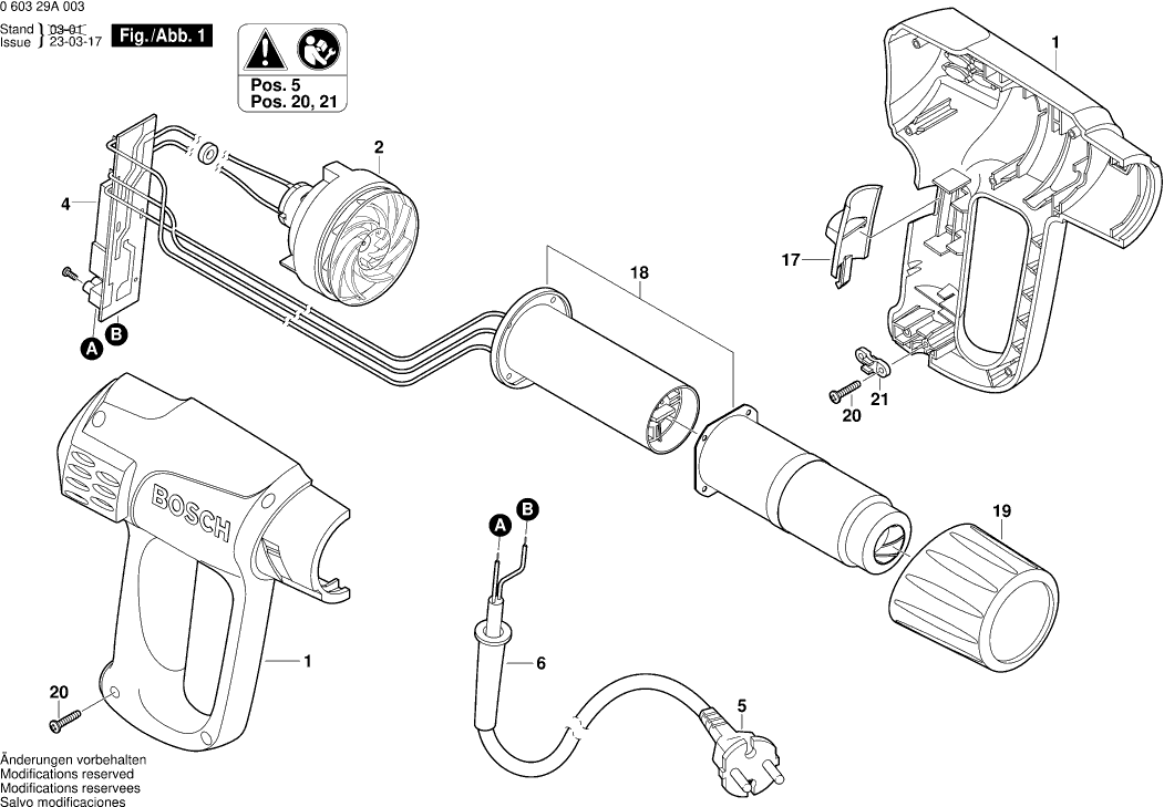 Onderdelen lijst van de Bosch 060329A003 ( PHG500-2 )